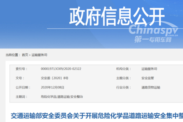 交通運輸部開展危險化學品道路運輸安全集中整治工作