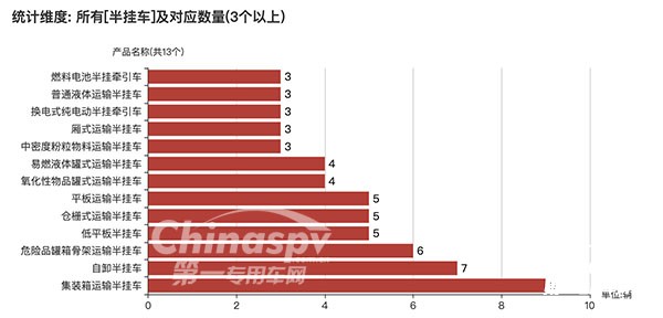 【數(shù)量在3臺(tái)以上的半掛車(chē)車(chē)型及數(shù)量】