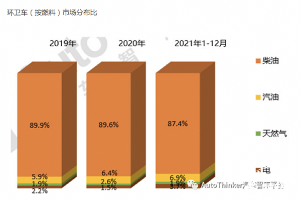 截圖4,2019年—2021年各類動(dòng)力環(huán)衛(wèi)車銷量占比(來(lái)源:汽車智庫(kù)平臺(tái))