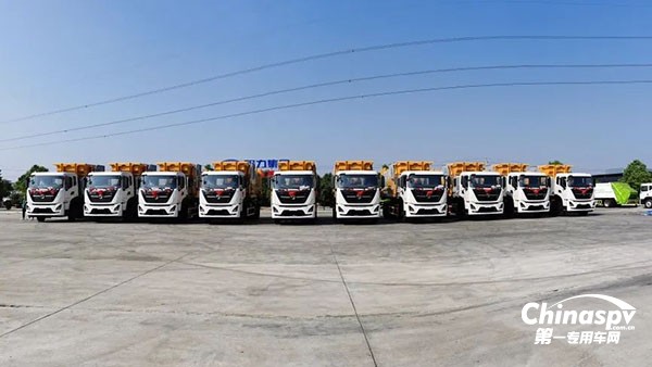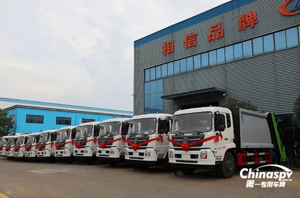 繼而,程力集團環(huán)衛(wèi)二直屬廠生產的18噸壓縮式垃圾車下線,東風商用車專用車底盤部攜手程力集團再次向客戶批量交付15臺。
