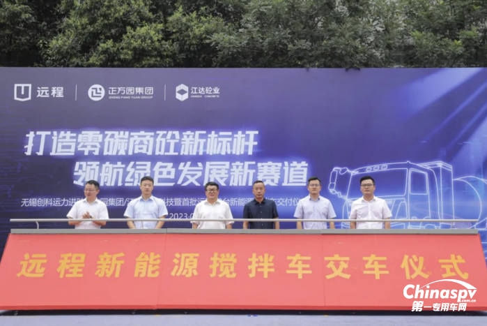 本次交付,是遠程新能源商用車集團、正方園集團、無錫創(chuàng)科三方積極推進商砼行業(yè)綠色轉型,為無錫市場的商砼運輸提供綠色解決方案的一次重要合作。遠程新能源商用車集團成立9年以來,積極踐行國家“雙碳”戰(zhàn)略目標,堅定圍繞新能源商用車發(fā)展,以研發(fā)為先導,圍繞重卡板塊,已經研發(fā)多種新能源動力。活動當天交付的純電攪拌車,未來將鏈合能源端布局換電站,滿足客戶高效運營需求,對無錫推廣普及新能源攪拌車、助力商砼企業(yè)綠色轉型將起到良好的示范效應。