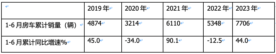 表3,根據(jù)截圖1和上牌數(shù)據(jù),近5年1-6月房車(chē)?yán)塾?jì)銷(xiāo)量及同比: