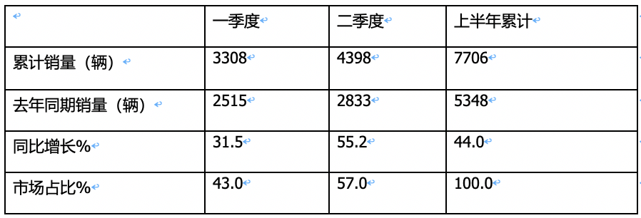 ---今年二季度房車(chē)?yán)塾?jì)銷(xiāo)售4398輛,同比增長(zhǎng)55.2%,跑贏上半年房車(chē)市場(chǎng)44%的增速近11.2個(gè)百分點(diǎn);市場(chǎng)占比為57%,居于主體地位。