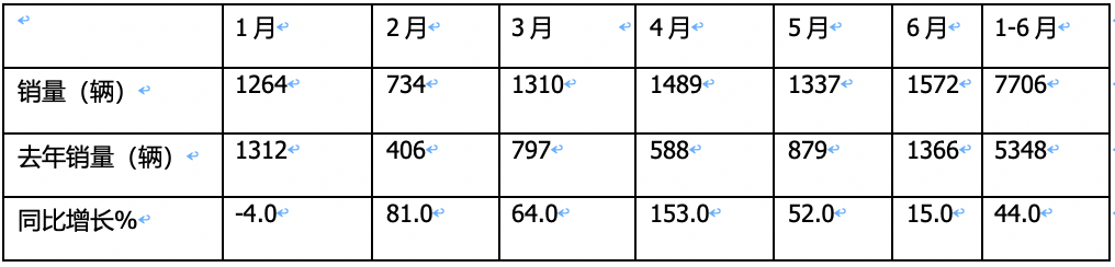 一:月度銷(xiāo)量同比“1降5連漲”,6月銷(xiāo)量創(chuàng)上半年各月新高