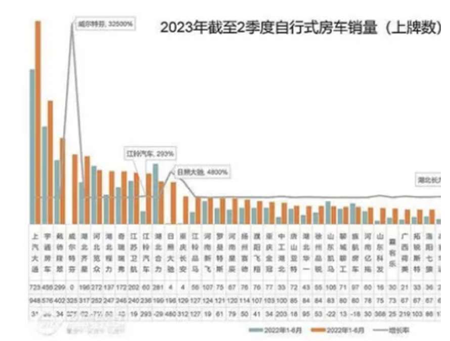 截圖2,2023年1-6月主流車(chē)企的國(guó)產(chǎn)自行式房車(chē)銷(xiāo)量及同比(數(shù)據(jù)來(lái)源:21世紀(jì)房車(chē)提供的上牌信息)