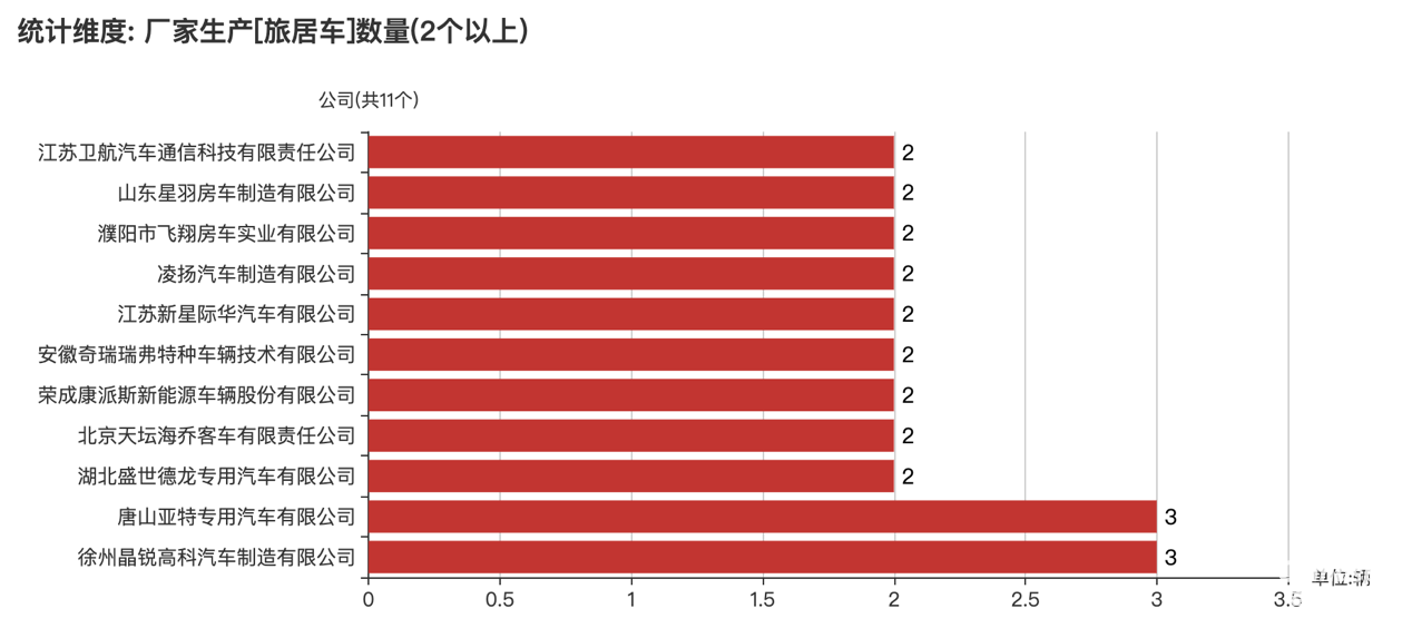 數(shù)量在2臺以上的旅居車企業(yè)情況