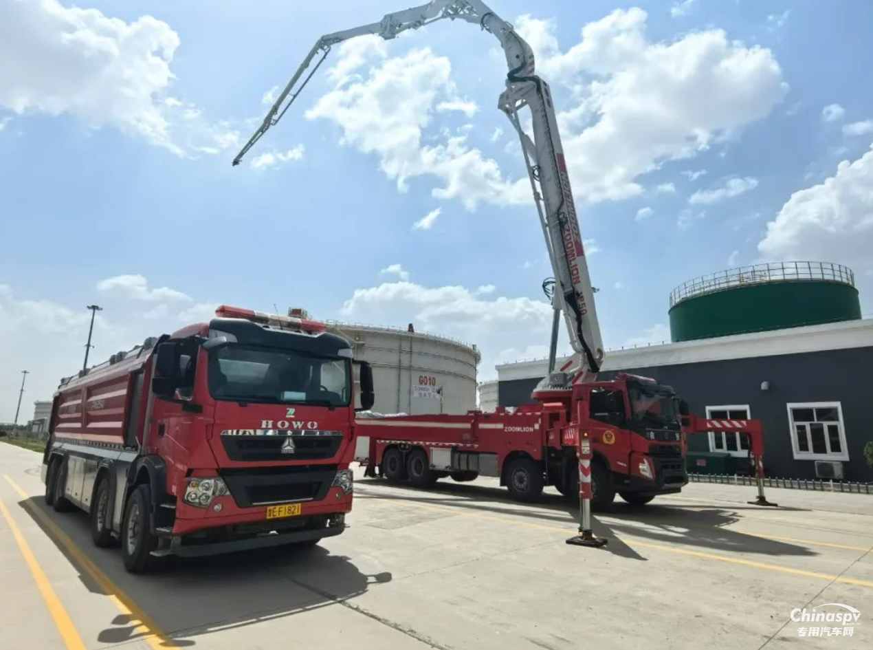 “新兵”入列 中聯(lián)重科大跨距舉高噴射消防車在青島港東營港聯(lián)化投入執(zhí)勤