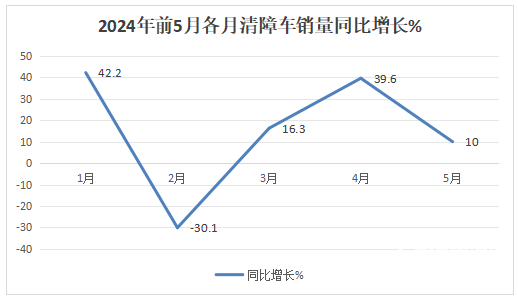上兩圖可見,2024年1-5月清障車?yán)塾?jì)銷售7899輛,同比下增長14%,是近6年來同比第二個(gè)正增長的年份,同比增速達(dá)到14%,居第二,表現(xiàn)還算不錯(cuò)。據(jù)分析: