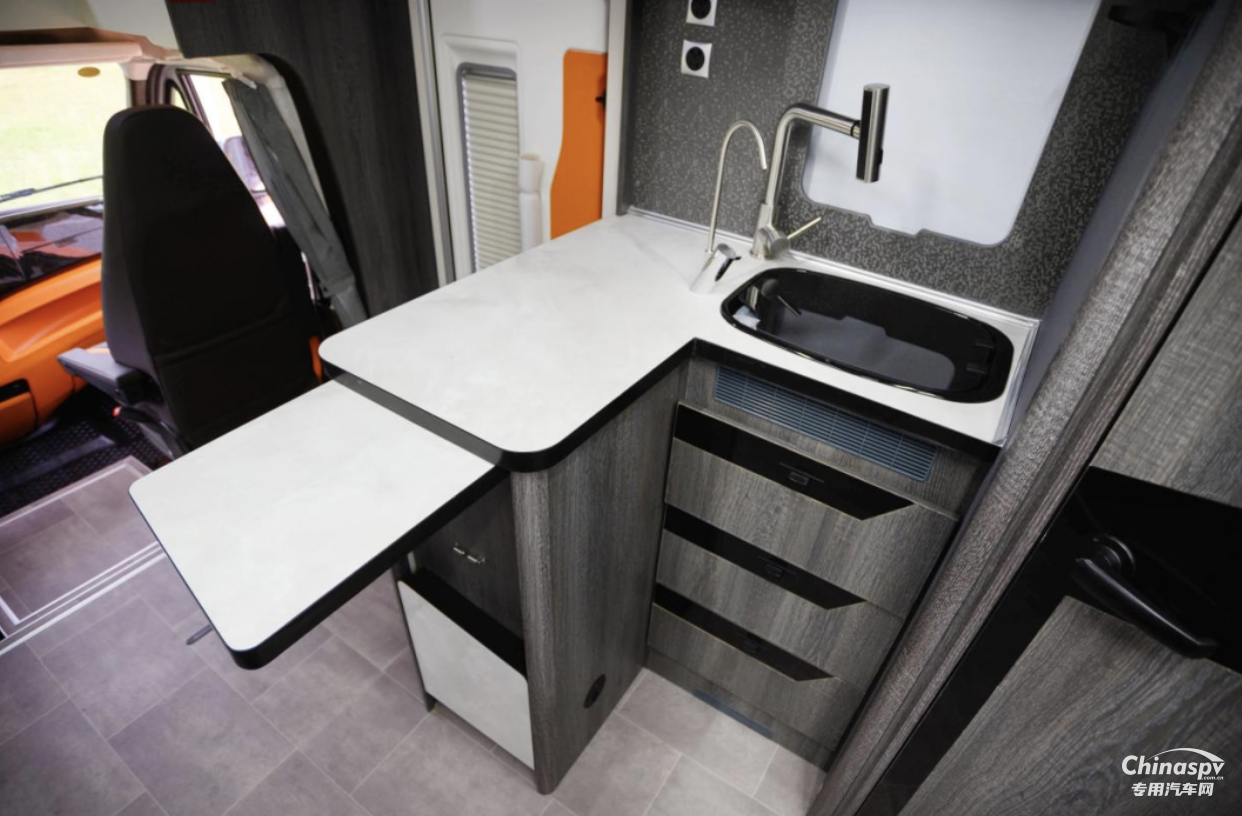 車身尺寸方面,新車的長/寬/高分別為5995x2450x3200(mm),車輛外側(cè)裝配有豪華艙門、電動(dòng)伸縮踏步、三眼拖車杠、戶外淋浴裝置、斯彼德曼電動(dòng)遮陽棚(3.5m)、多功能抽拉式灶臺(tái)、戶外操作板,戶外插座(220V),車輛還配備有4根電動(dòng)調(diào)平支腿,保障車輛駐扎的平穩(wěn)性和用戶生活舒適性。