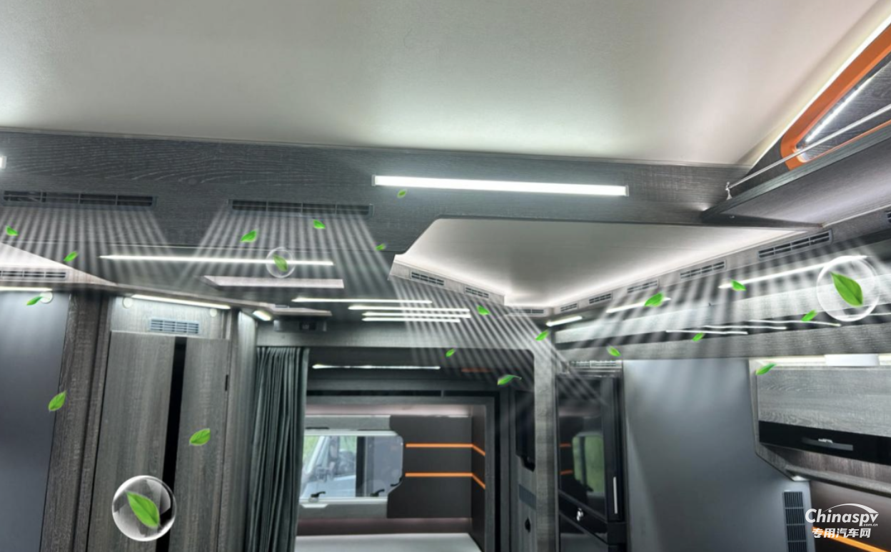 制冷上,中央空調(diào)結(jié)合管控系統(tǒng),這是一種全新的房車空調(diào)無風(fēng)感設(shè)計(jì),完全改變了傳統(tǒng)空調(diào)制冷制熱只局限于出風(fēng)口的位置,創(chuàng)新性地將出風(fēng)口遍布車內(nèi)每一個(gè)角落。應(yīng)用全新的冷熱空氣交換技術(shù),最終形成了四季恒溫遠(yuǎn)航24系列。