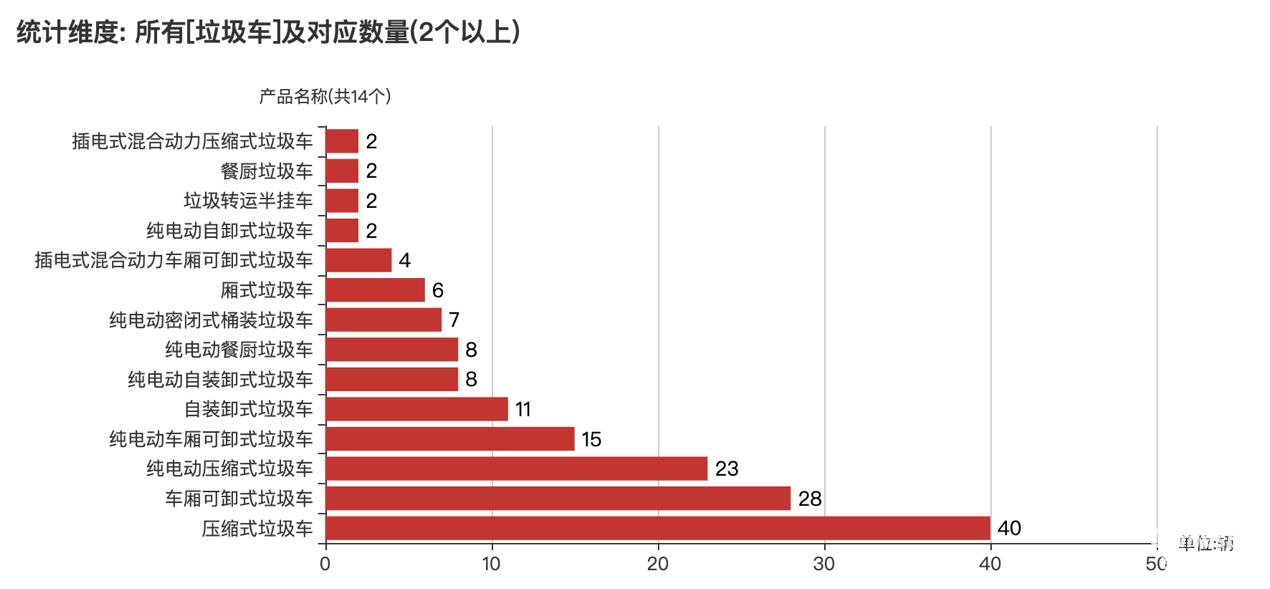 數(shù)量在2臺(tái)以上的垃圾車車型情況