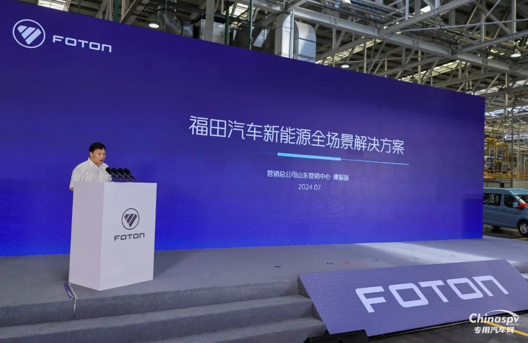 隨后,福田汽車山東營銷中心總經(jīng)理譚振國對新能源全場景解決方案進(jìn)行解讀時表示,福田汽車已經(jīng)完成產(chǎn)品-生態(tài)的全場景解決方案,涵蓋客戶“購、用、管、養(yǎng)、換”的全周期。技術(shù)層面,實行戰(zhàn)略三線并舉,制定了“宜電則電、宜混則混、宜氫則氫”的技術(shù)路線,覆蓋短距輕載、中長距重載及復(fù)合場景;產(chǎn)品層面,福田汽車為城市物流、末端配送、重型運輸、市政環(huán)衛(wèi)/機場、城市/城間客運提供了EV、PHEV、FCV的全場景產(chǎn)品解決方案;網(wǎng)絡(luò)覆蓋層面,山東區(qū)域銷售網(wǎng)絡(luò)224家、服務(wù)網(wǎng)絡(luò)536家,具備行業(yè)最強三電及核心部件維修能力,實現(xiàn)全區(qū)域覆蓋,此外山東區(qū)域更是設(shè)有2個福田全球配件中心,實現(xiàn)急需配件“12小時達(dá)”;后市場層面,會享福二手車、車隊管理系統(tǒng)、純正配件+卡友配,為用戶提供高效率、高溢價的二手車處置方案、“車聯(lián)網(wǎng)+物流一體化”解決方案和低成本、高質(zhì)量的維修方案;能源生態(tài)層面,福田汽車打造“車+樁+光+儲+荷+智“的生態(tài)圈,為客戶提供充換電、整車租賃、電池租賃等多種模式。