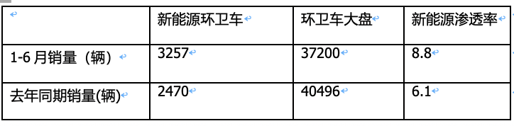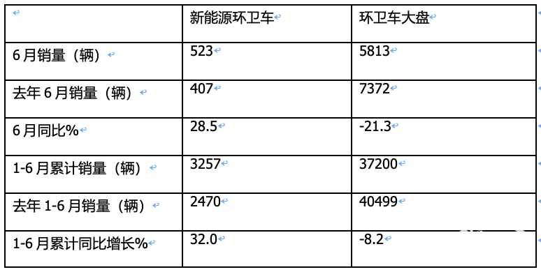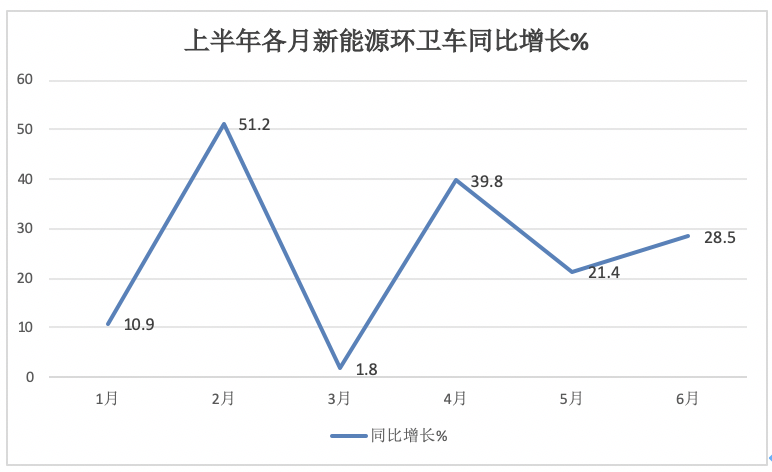 ---今年6月新能源環(huán)衛(wèi)車(chē)銷(xiāo)量同比增長(zhǎng)28.5%,跑贏今年6月環(huán)衛(wèi)車(chē)大盤(pán)-21.3%的增速近49.8個(gè)百分點(diǎn);