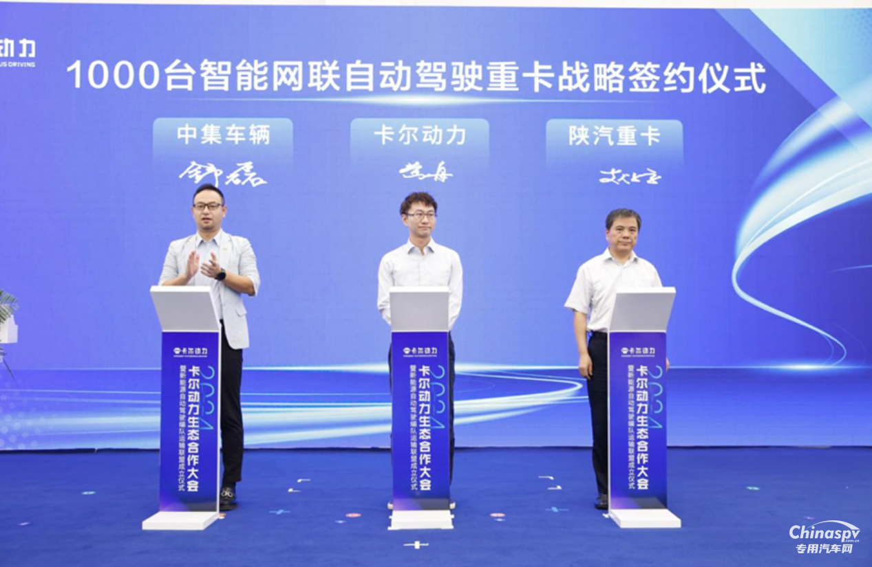 中集車輛、卡爾動力和陜汽重卡繼續(xù)深化合作,共同簽訂1000臺智能網(wǎng)聯(lián)編隊卡車戰(zhàn)略合作協(xié)議,刷新行業(yè)最大頭掛一體訂單規(guī)模。這標志著三家企業(yè)在參與我國智能網(wǎng)聯(lián)自動駕駛重卡和物流運輸新質(zhì)生產(chǎn)力領(lǐng)域,結(jié)成了強強聯(lián)合、資源共享的戰(zhàn)略共同體,各方將攜手共進,向“新”而行,共贏未來。