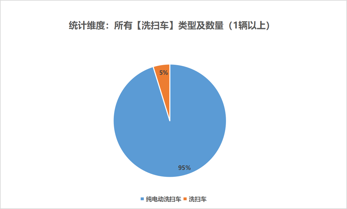 本次公告中的21款洗掃車中,純電動(dòng)洗掃車(20輛,占比95.24%)、未公布能源情況(1輛,占比4.76%)。