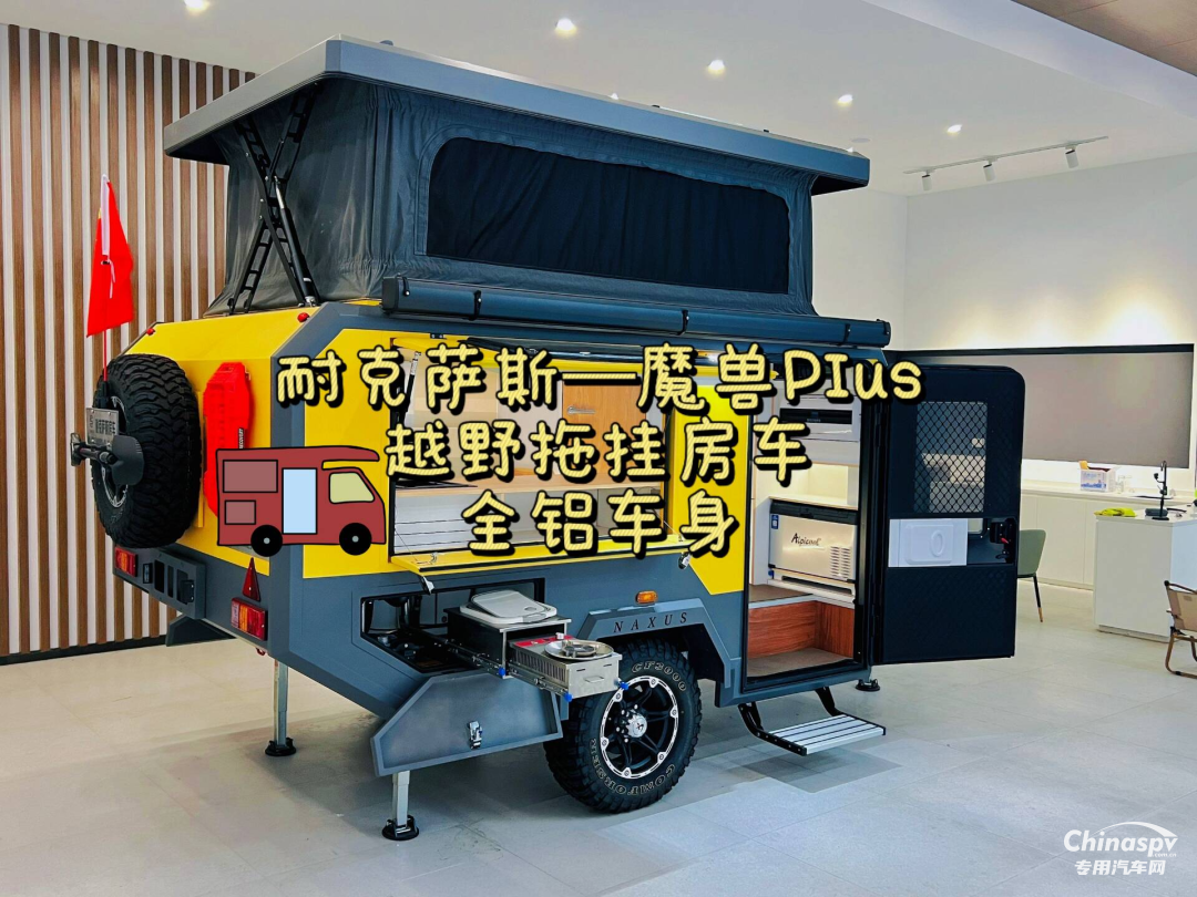 魔獸Plus越野拖掛房車車身采用全鋁材料,框架式結(jié)構(gòu),長寬高尺寸分別為4900/4720*2070*2130/2200MM,整備質(zhì)量僅有1.2噸;外觀有多種顏色方案可選(也可定制化或者噴涂防暴漆),符合越野房車的定位。頂部可以進行升降,提高了通過限高的能力,也提升了車內(nèi)空間。