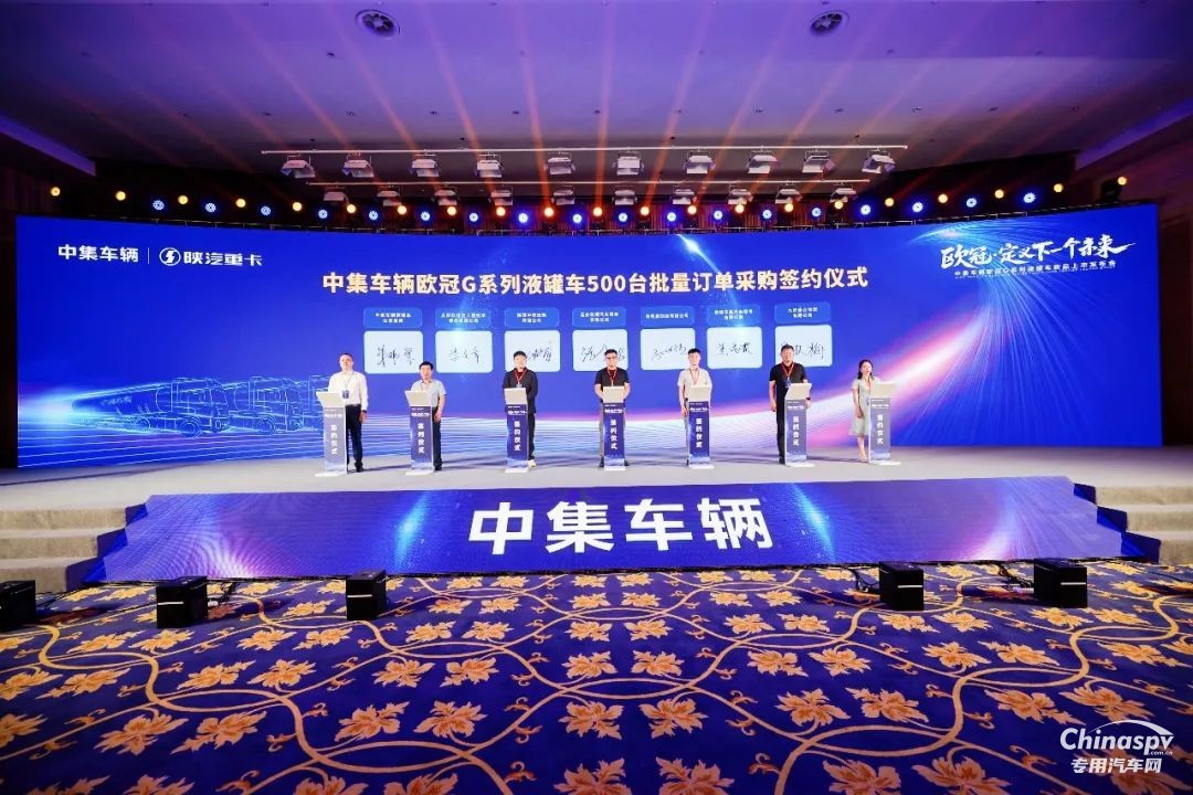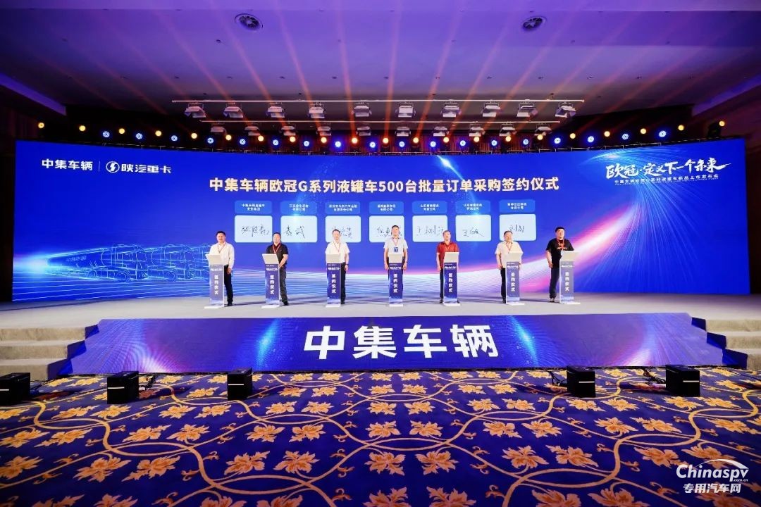 在發(fā)布會(huì)現(xiàn)場,“歐冠G”系列液罐車憑借實(shí)測(cè)性能贏得行業(yè)頭部客戶高度認(rèn)可,朱雀營銷總公司總裁張傳亮、玄武營銷總公司總裁朱偉軍與眾多客戶代表簽約采購訂單。