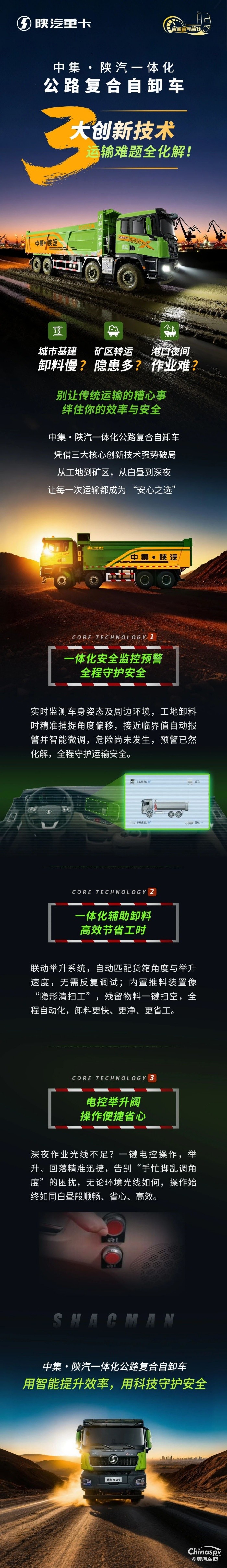 中集?陜汽一體化公路復(fù)合自卸車,三大創(chuàng)新技術(shù),運(yùn)輸難題全化解!