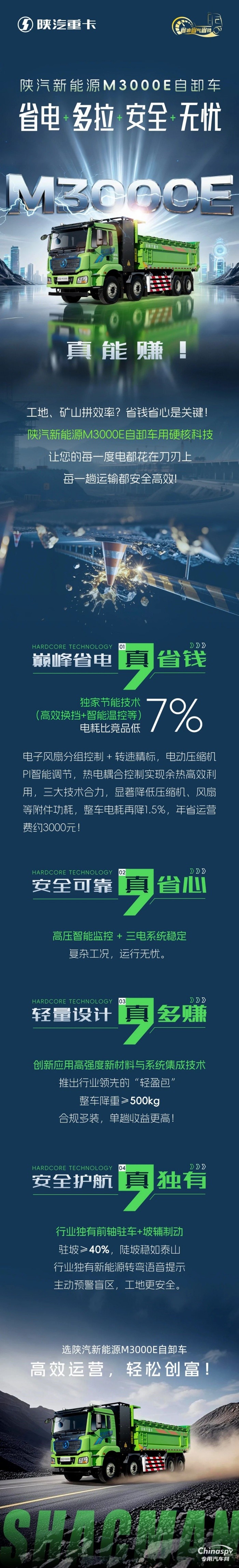 陜汽新能源M3000E自卸車:省電·多拉·安全·無憂,真能賺!