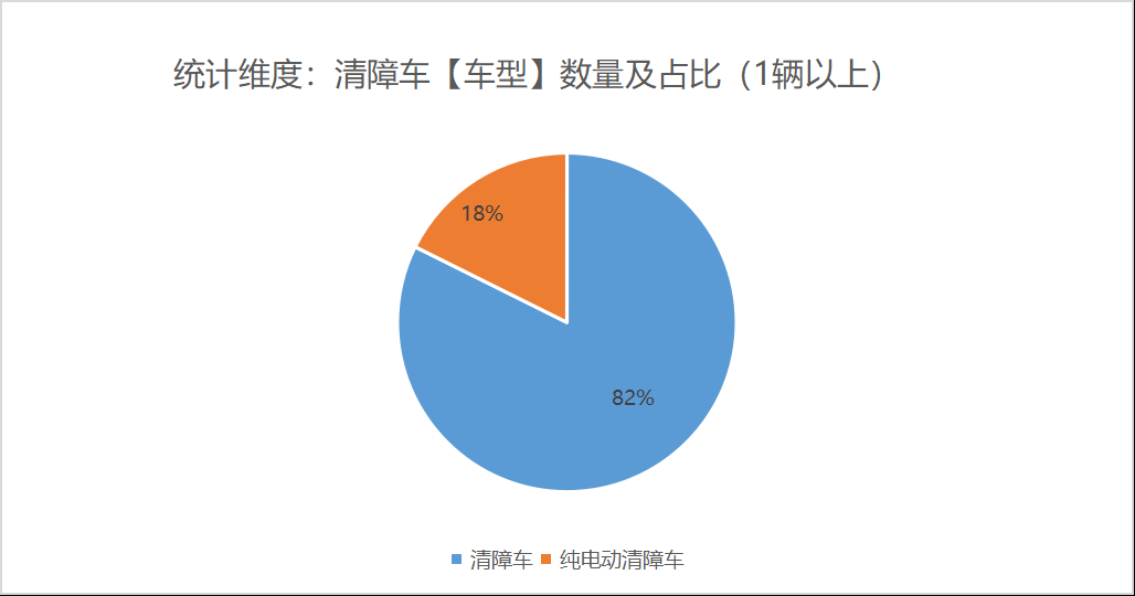 本次公告中的51款清障車中,純電動清障車(9輛,占比18%)、未公布能源情況(42輛,占比82%)。