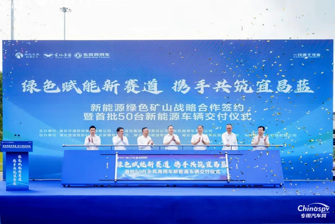 綠色賦能新賽道,攜手共筑宜昌藍(lán)。8月15日,東風(fēng)商用車(chē)有限公司、湖北交通投資集團(tuán)有限公司(以下簡(jiǎn)稱(chēng)“湖北交投”)、湖北宜化集團(tuán)有限公司(以下簡(jiǎn)稱(chēng)“湖北宜化”)在宜昌舉行“新能源綠色礦山戰(zhàn)略合作簽約暨首批50輛新能源車(chē)輛交付儀式”。
