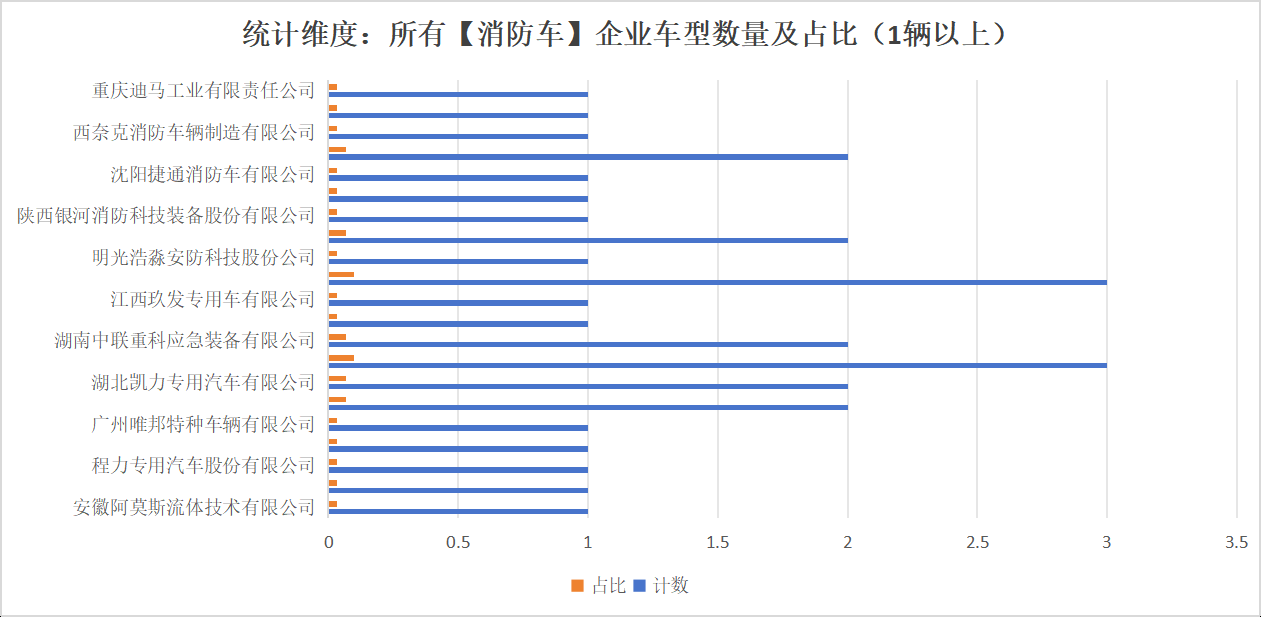 第397批次公告消防車統(tǒng)計(jì)分析:公示企業(yè)達(dá)21家11種車型,水罐、器械消防車數(shù)量最多