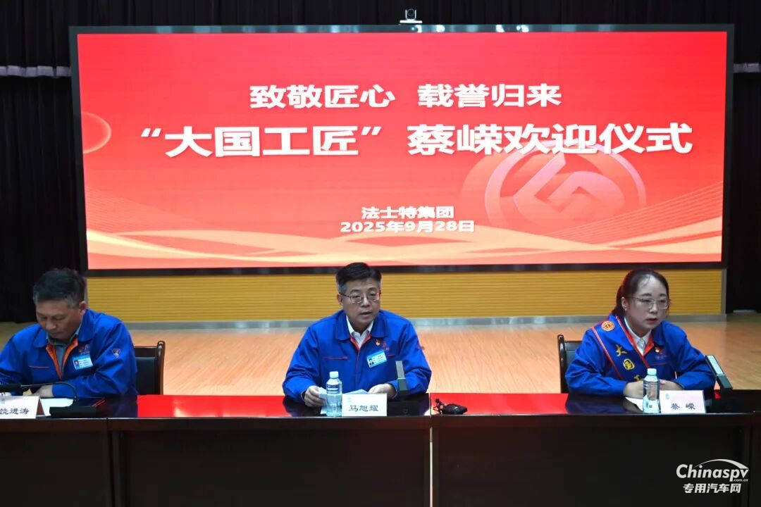 2025年9月28日,法士特集團在西安高新廠區(qū)舉行簡樸而熱烈的“大國工匠”歡迎儀式。法士特集團黨委書記、董事長馬旭耀率領導班子成員、部分中層干部和法士特工匠,歡迎“大國工匠”蔡嶸同志載譽歸來。法士特熱烈歡迎“大國工匠”蔡嶸載譽歸來