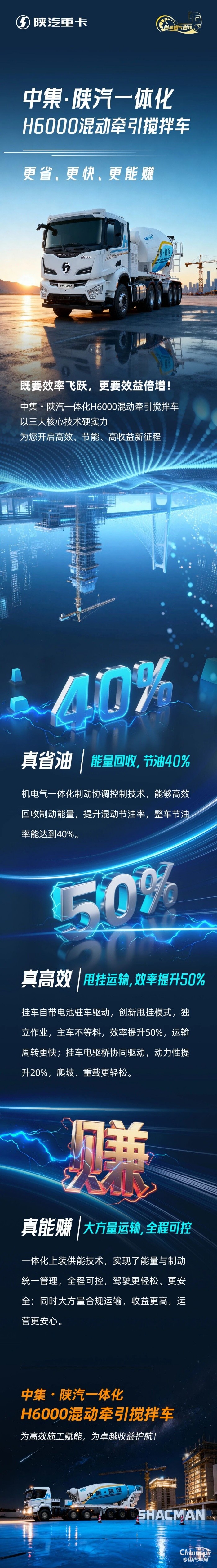中集·陜汽一體化H6000混動(dòng)牽引攪拌車,更省、更快、更能賺
