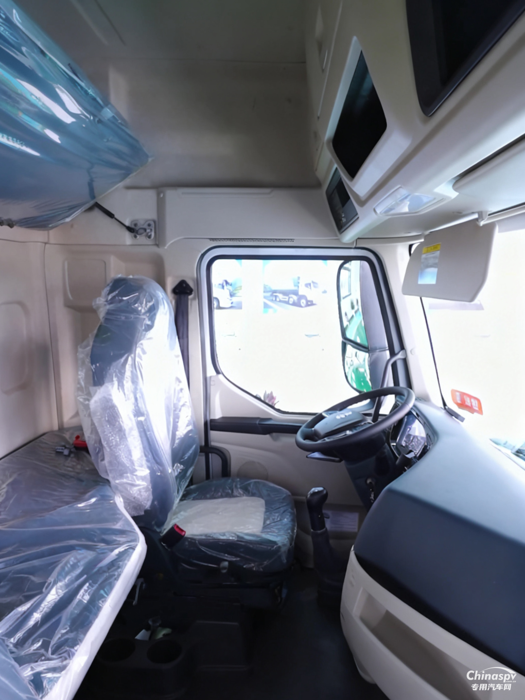 它配備平地板高頂雙臥駕駛室,搭配氣囊減震座椅,長時(shí)間駕駛也能保持舒適;
