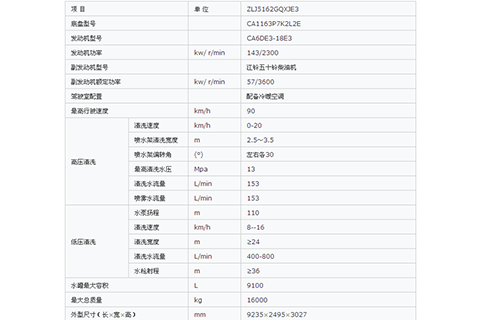 具有獨(dú)立的高、低壓兩套水路系統(tǒng),采用副發(fā)動機(jī)驅(qū)動高壓水泵及工作裝置液壓系統(tǒng)、底盤發(fā)動機(jī)驅(qū)動低壓水泵,高壓清洗速度可任意控制。
