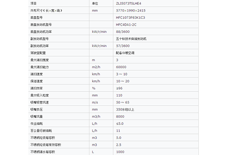 ZLJ5073TSLHE4型掃路車(chē)采用安徽江淮汽車(chē)股份有限公司HFC1073P83K1C3二類(lèi)汽車(chē)底盤(pán)改裝,排放達(dá)到歐Ⅳ標(biāo)準(zhǔn)。其主要配套件采用日本五十鈴技術(shù)的柴油副發(fā)動(dòng)機(jī)、中法合資的電控元件、丹麥DANFOSS或濟(jì)寧EATON擺線馬達(dá)、中日合資榆次YUKEN電磁換向閥和疊加閥,并且擁有“掃路車(chē)清掃裝置”、“掃路車(chē)吸嘴”等多項(xiàng)專(zhuān)利,可攜帶吸鐵裝置、自潔沖洗水泵等附加裝置,主要適用于城市道路、廣場(chǎng)、機(jī)場(chǎng)、碼頭等路面的清掃保潔作業(yè)。