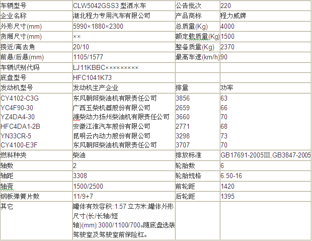 程力威牌CLW5042GSS3型灑水車