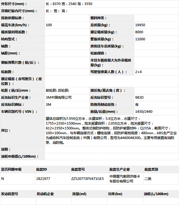 公告型號(hào) ZXF5190GXFPM80/HT5