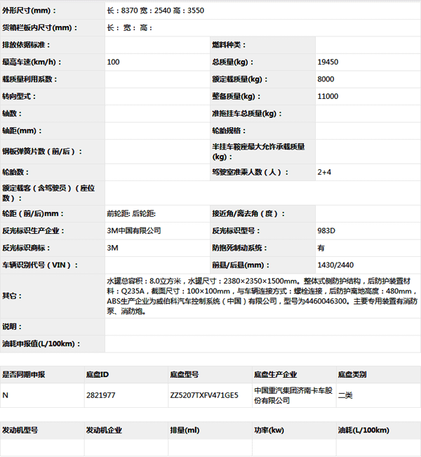 公告型號(hào) ZXF5190GXFSG80/HT5