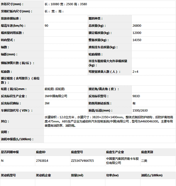 公告型號 SJD5271GXFSG120/STA