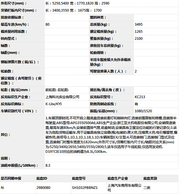 公告型號 JHW5031XQYS