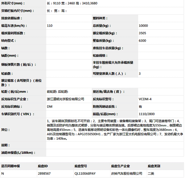 公告型號 ZYG5101XZB5