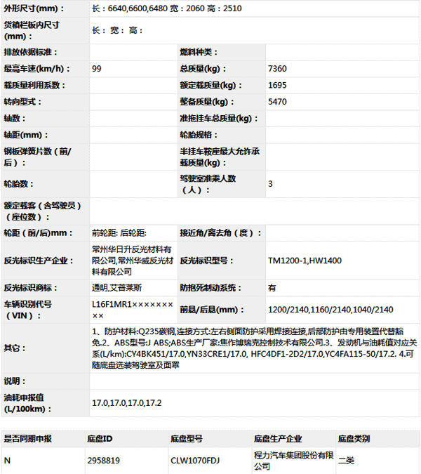 公告型號 CLW5070ZYSA5