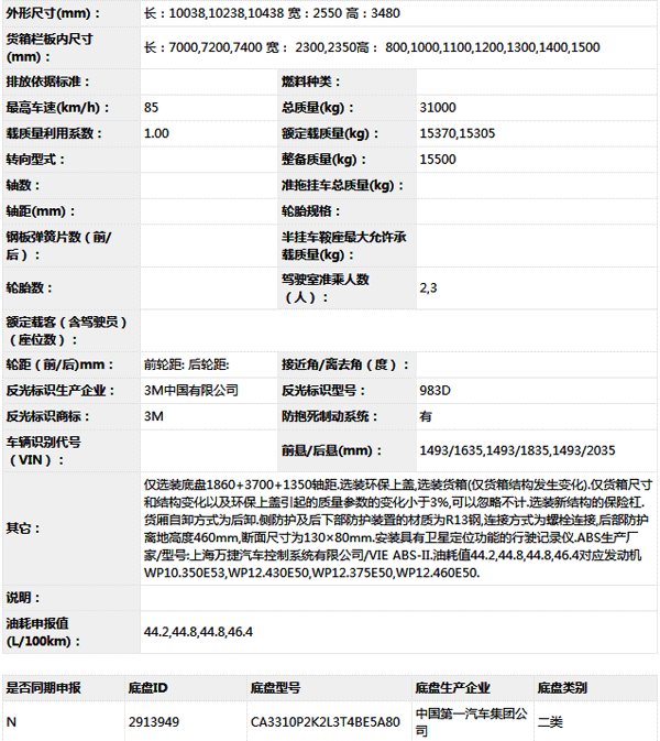 公告型號(hào) CA5311ZLJP2K2L3T4E5A80