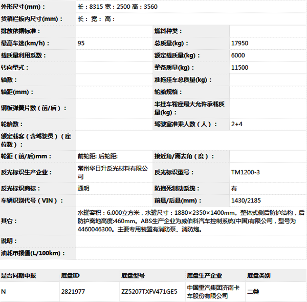 長春基洋消防飛雁牌CX5180GXFSG60/H水罐消防車