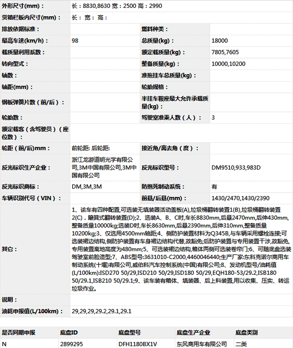 公告型號 YTZ5181ZYS20D5