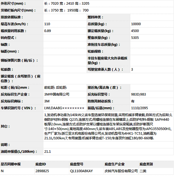 公告型號 QL5100ZZZA8KAJ