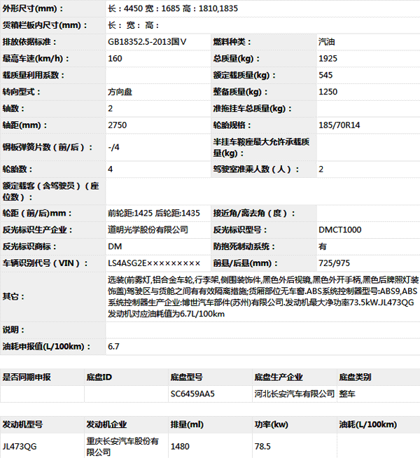 河北長安SC5028XXYA5廂式運(yùn)輸車