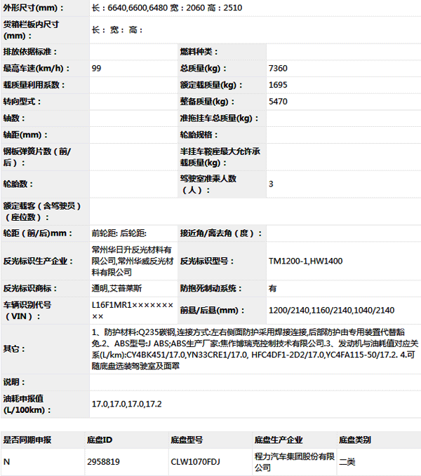 公告型號 CL5070ZYSA5