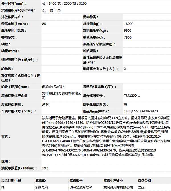 公告型號(hào) CLW5181GYYD5