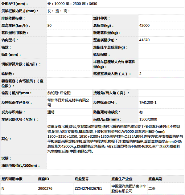 公告型號 CLW5420JQZZ5