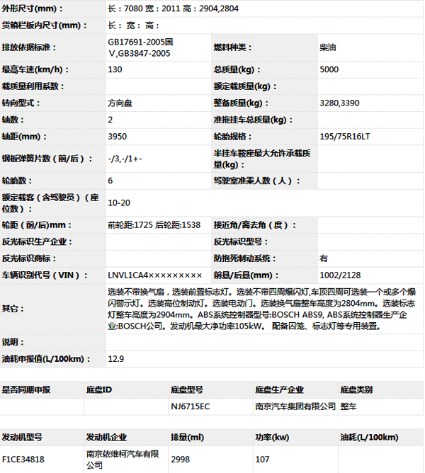 公告型號 NJ5055XQCJE