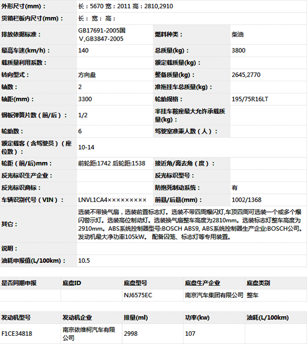 公告型號(hào) NJ5045XQCFE
