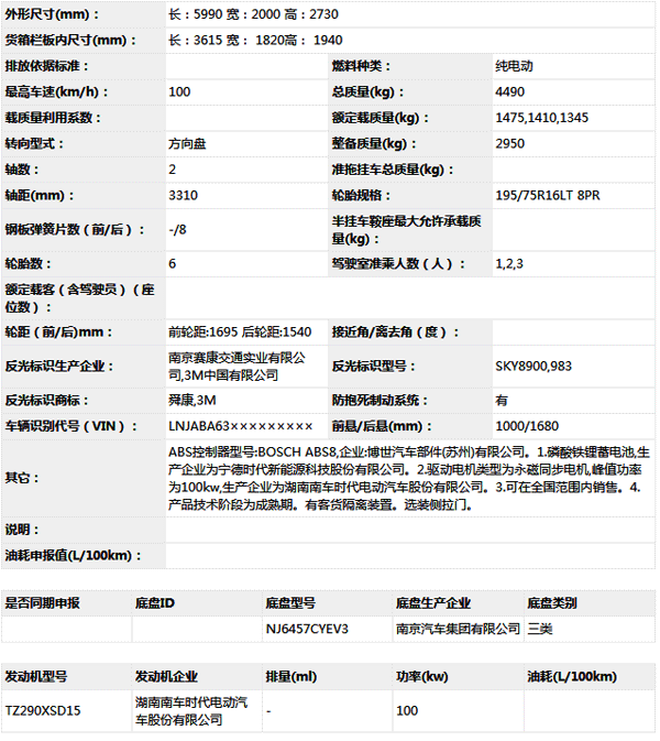 公告型號 NJ5047XXYCEV5