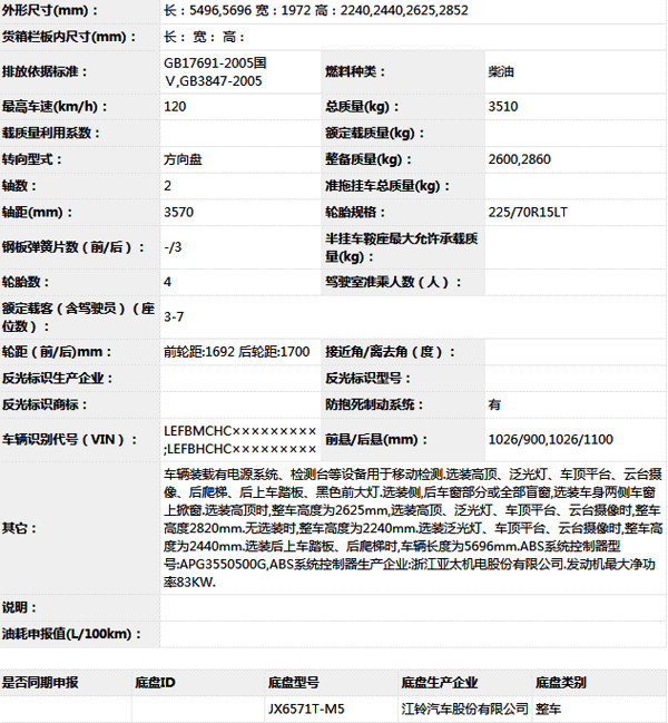 公告型號(hào) NJ5040XJC53